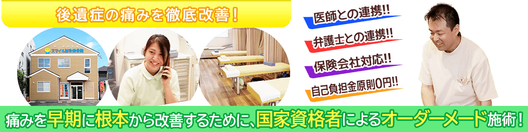 後遺症をできるだけ残さないようにするためには、早期改善・根本改善を目指した施術を受けることが大切です。